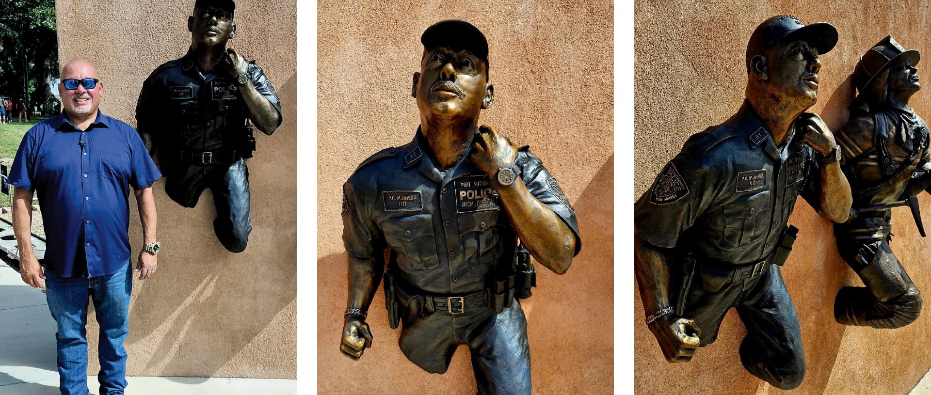 On Saturday, September 13, the Tri-State 9-11 Foundation in Lamar, Colorado, unveiled a bronze sculpture of retired Port Authority Police Detective Will Jimeno at the Tri-State 9-11 Memorial. The sculpture joins those of New York City firefighter Stephen Siller and a soldier. The three statues are presented in a “Field of Dreams” pose on the Tri-State 9-11 Memorial’s center wall. Eventually, the combined display will be entitled “Running Toward Danger.”