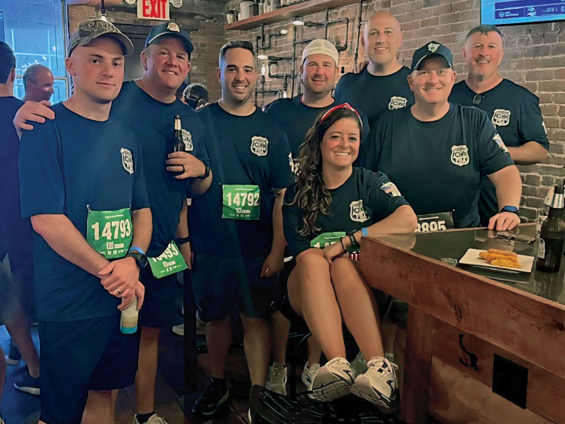 Port Authority PBA President Frank Conti joined uniformed members at the finish line to cheer on the runners, and the PBA hosted a post-race gathering at Monk McGinns, 57 Murray Street in Lower Manhattan, to thank all who participated and contributed — making it another successful year for the Port Authority PBA Team.