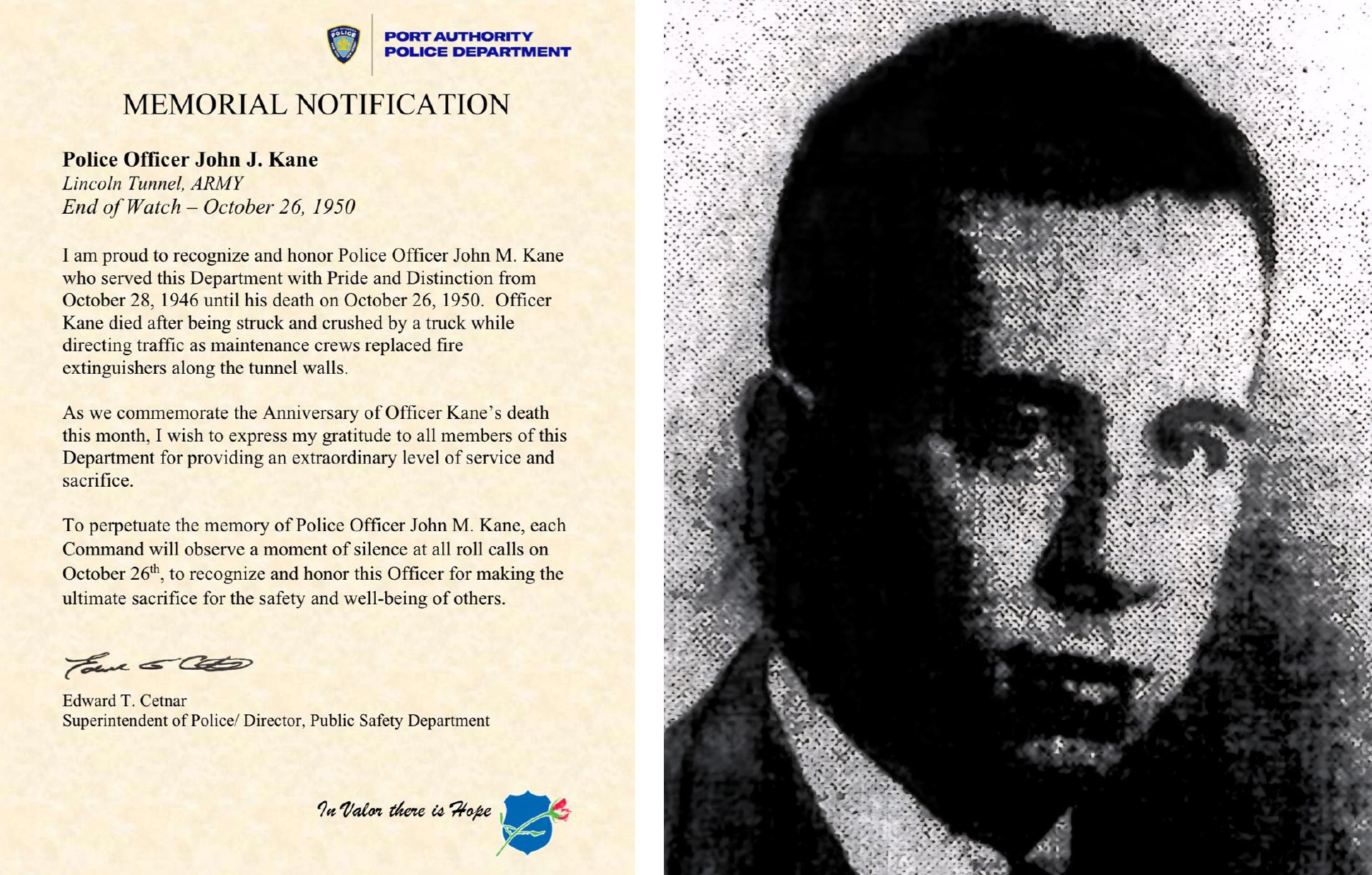 The Port Authority PBA always honors and remembers Police Officer John Kane (EOW 10/26/1950).