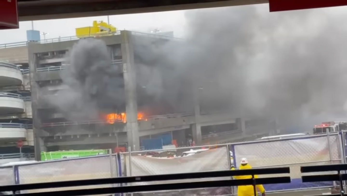 Three Port Authority police officers were hospitalized after battling a two-vehicle inferno in a JFK Airport parking garage on the afternoon of Tuesday, March 3. The FDNY arrived and eventually extinguished the fire.